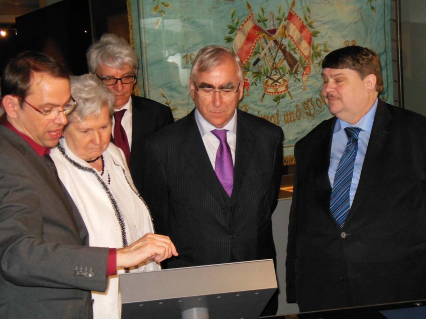v.l.: Dr. Martin Posselt, Landtagsabgeordneter Bernhard Pohl, Staatsministerin Carolina Trautner, Dr. Thomas Jahn, Oberbürgermeister Stefan Bosse - Fotografie Ute Hultsch