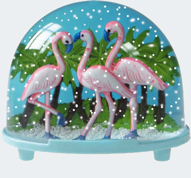 Flamingos vor Palmen im Schneesturm - keine Klimakatastrophe, sondern ein Szenario aus der Schneekugel. Das Isergebirgs-Museum widmet seine neue Sonderausstellung den kleinen bunten Schüttelkugeln, in denen es auf alles nur Erdenkliche schneit: auf Raumschiff Enterprise und Neuschwanstein, die Titanic und Harry Potter, den kleinen Prinzen und den neuen Airbus. Die Ausstellung entstand in enger Kooperation mit der Neugablonzer Firma Walter und Prediger, dem größten deutschen Schneekugelhersteller. Besonders ausgefallene Objekte stellte der Nürnberger Josef Kardinal zur Verfügung, der es mit seiner Sammlung von über 7.000 Schneekugeln ins Guinness-Buch der Rekorde geschafft hat.