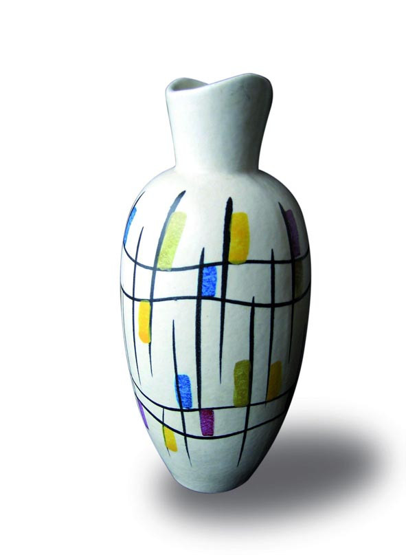 Der Sammler Alois Harasko aus Augsburg hat sich der Keramik der Fünfziger Jahre verschrieben. Die bunte Auswahl an Vasen, Krügen, Schalen, Figuren und Wandbildern, die er für die Ausstellung zur Verfügung stellt, vermittelt das Lebensgefühl des Jahrzehnts.