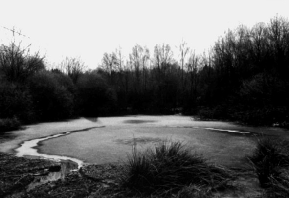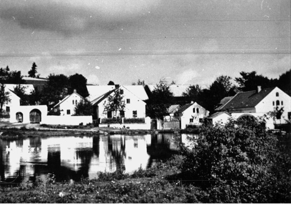 Wosant, ein Dorf im Böhmerwald im Jahr 1923: Heimelige Wohnhäuser mit Vorgärten spiegeln sich im Dorfteich. Dieselbe Ansicht im Jahr 1996: Nur noch der Teich ist geblieben, anstelle der Häuser steht dichtes Gebüsch.