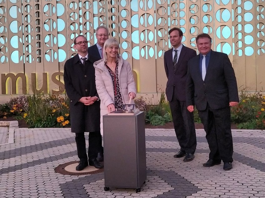 v.l.: Dr. Martin Posselt, Landtagsabgeordneter Bernhard Pohl, Staatsministerin Carolina Trautner, Dr. Thomas Jahn, Oberbürgermeister Stefan Bosse - Fotografie Ute Hultsch